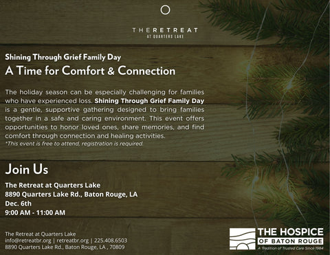 At The Retreat at Quarters Lake, we host a variety of programs and events and continuous support groups throughout the year to connect with and engage our community. From educational workshops to uplifting gatherings and grief support groups, our events provide valuable resources and opportunities for connection. Join us for insightful discussions, interactive activities, and moments of reflection as we come together to navigate the journey of grief and healing. Sign up for our newsletter to stay updated on upcoming events.